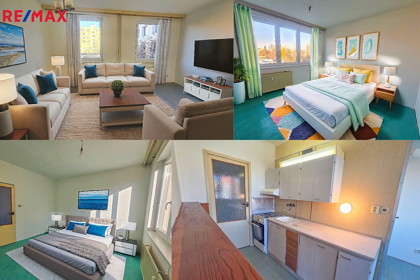 Byt o celkové podlahové ploše 66 m2 se nachází ve třetím patře zrekonstruovaného panelového domu s výtahem.