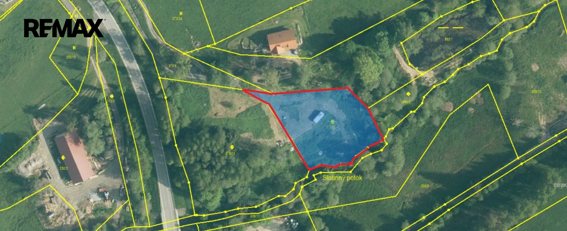Unikátní přirození: Jedna hranice tvoří potok Slatinka s pramenitou vodou (pobírá ji obec) a pstruhy. Pozemek je bohatý na vodu – vrt 33 m hluboký + spodní prameny.