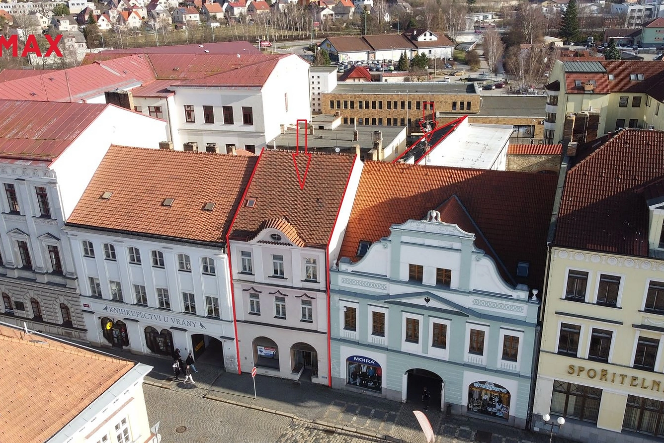 Nabízíme Vám k prodeji podsklepený historický bytový dům v centru města Pelhřimov na adrese Masarykovo náměstí 32. Tento patrový dům o třech podlažích s celkovou zastavěnou plochou 336 m² a užitnou plochou 490 m² poskytuje skvělou investiční příležitost s dobrým potenciálem návratnosti. V domě je 7 bytových jednotek od 1+1 po 3 + kk (vše pronajaté) a v přízemí obchod 50 m² se skladovou plochou 65 m².