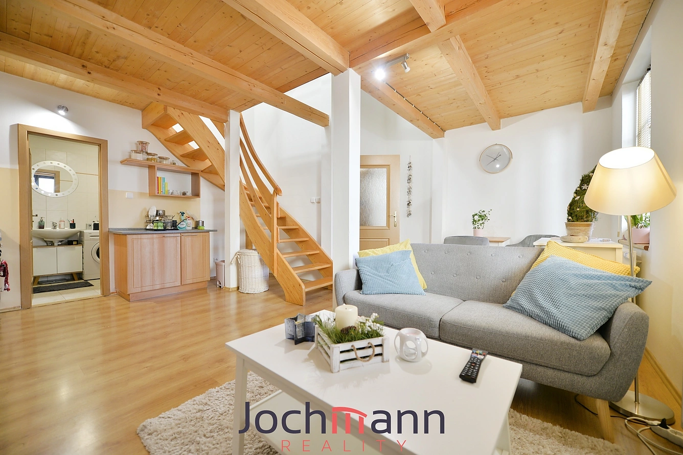 V samotném centru Českých Budějovic, jen pár minut chůze od hlavního náměstí, se v historickém domě nachází světlý mezonetový byt o dispozici 2+kk.